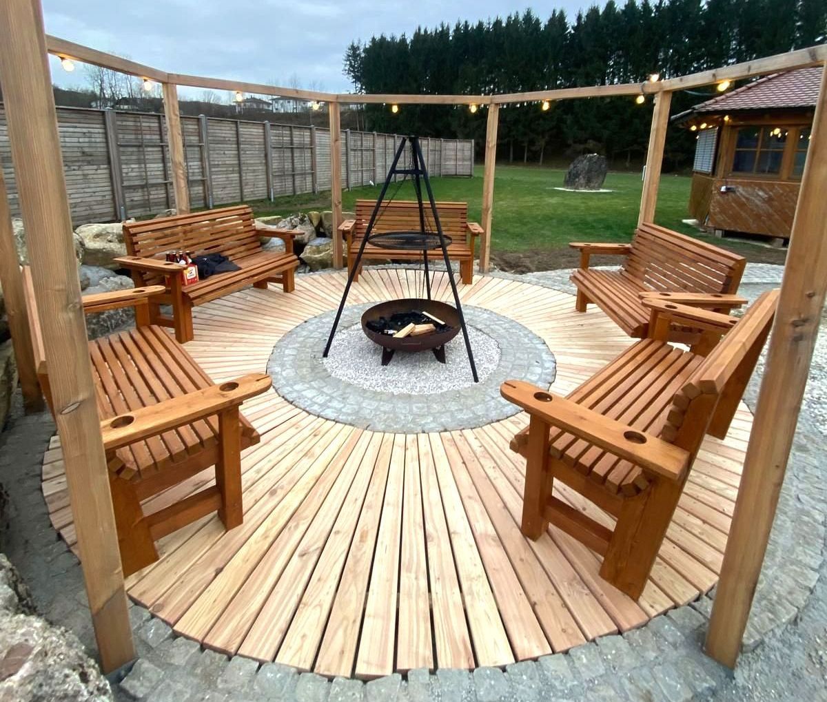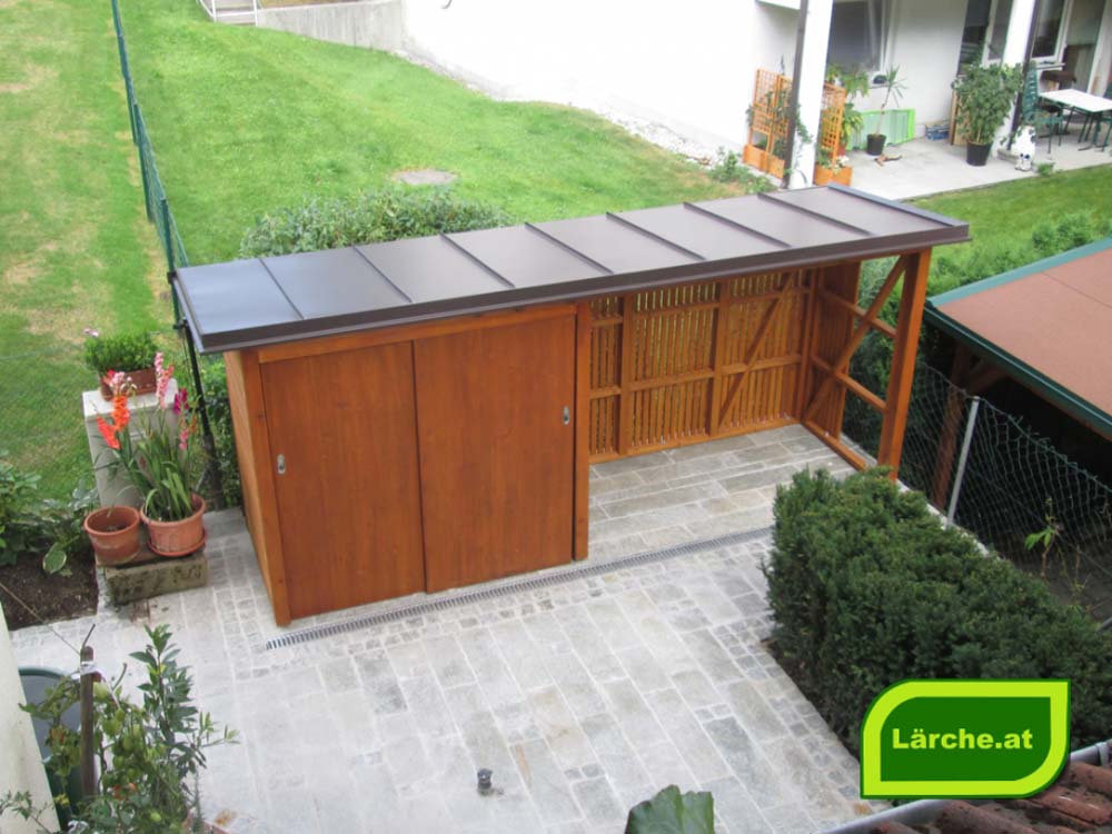 Aufbewahrungsboxen für die Gartenstuhlpolster, Müllhäuschen oder ein Geräteschuppen mit Schiebetür gehören zu den leichteren Übungen. Mehr Aufwand, vor allem bezüglich der Unterkonstruktion, erfordert eine Landeplattform für Hubschrauber, da sie einer hohen Gewichtsbelastung standhalten muss.